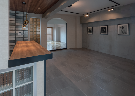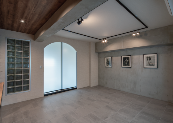スタジオスペースとプライベートゾーンを繋ぐのは、特徴的なアーチ型の扉。扉は半透明になっているので、しっかりプライベートゾーンを隠しながら、スタジオまで光を運んでくれます。