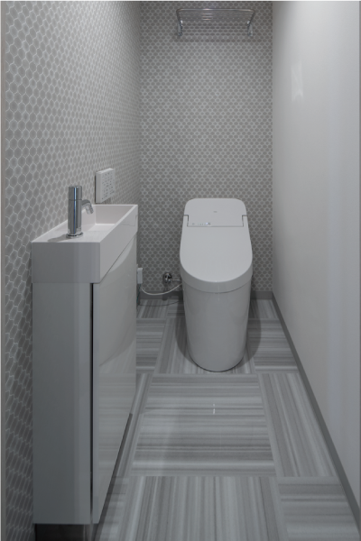 トイレもこちらのスタジオスペースに配置されているので、来客をプライベートゾーンに通さなくても良い設計になっています。
