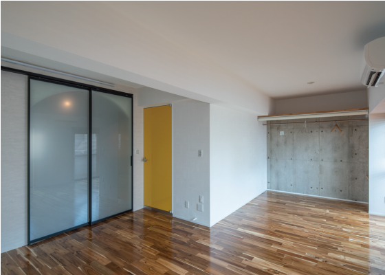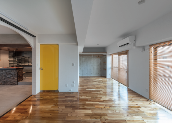 扉を抜けるとガラッと雰囲気が変わり、こちらは明るいカラーのフローリング。大きな窓があるので日中は太陽光が差し込んでとても明るい。