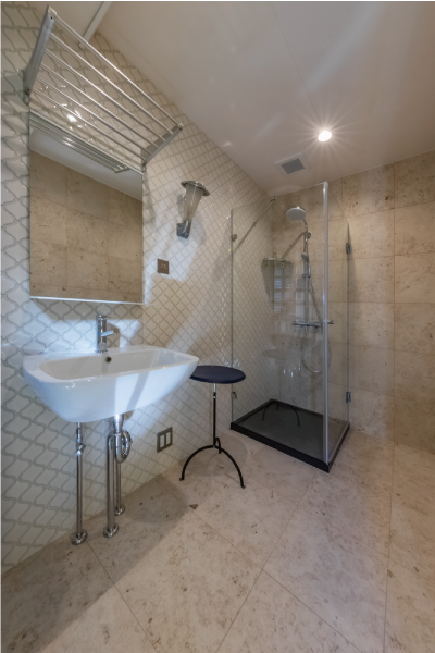 最後にこちらの物件、店舗利用がメインの使い方になりそうですが、トイレ、シャワーブースも設置されいるので、 泊まり込み作業をしたり、レイアウトを工夫して住居兼アトリエという、使い方も出来ます。