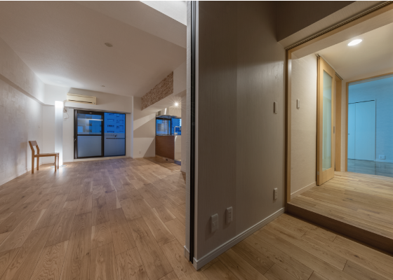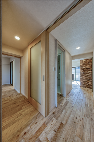 リビング横にはもう1つ洋室。こちらの洋室は、扉が半透明のガラスで出来ているので、きちんと空間を仕切りながら、リビングで過ごす家族の気配を感じる事が出来ます。