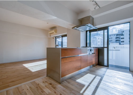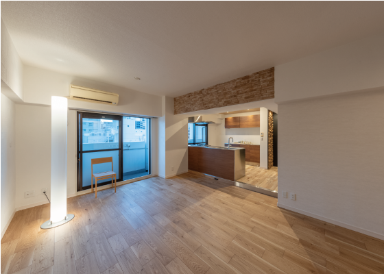 リビングダイニングはキッチンと繋がりのある空間となっているので、とても広く感じます。また西側がベランダに面しているので、大きな窓から風と光が入ってくる、気持ちの良い空間となっています。